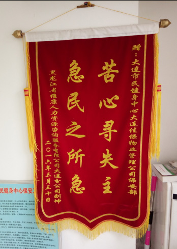 3月30日失主為表示感謝,一面題有“急民之所急,苦心尋失主”的錦旗送到了佳保物業(yè)保安部,感謝物業(yè)人員細(xì)致入微,盡心盡責(zé)的服務(wù)。